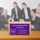 Carte de visite que vous pouvez customiser pour vos clients ou clients de trouver facilement votre adresse professionnelle et les coordonnées de votre contact. Les couleurs et le style de design sont des textes rose et blanc sur des textes arrière - plans violets et centrés des textes de votre nom d'entreprise, de votre nom et de votre titre. Pour customiser ce carte de visite, téléchargez votre logo d'entreprise, tapez votre nom d'entreprise, votre nom, votre titre, votre adresse, votre numéro de téléphone, votre courriel et votre site Web ou votre page de médias sociaux professionnels. Après avoir téléchargé le logo et tapé des textes, veuillez vérifier l'apparence sur les côtés avant et arrière. Si l'apparence vous plaît, vous pouvez passer votre commande maintenant. Si vous avez besoin de redimensionner et déplacer le logo et les textes pour s'adapter à ce carte de visite, s'il vous plaît changer dans l'outil de conception. Vous pouvez également effectuer d'autres modifications dans l'outil de conception en fonction de l'apparence de ce carte de visite que vous préférez, comme changer la couleur arrière - plan, la couleur de police et le style de police.