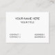 Carte de visite, taille : États-Unis : 8.9 cm x 5.1 cm, papier : Signature Matte, coins : Arrondis