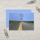 Un carte de visite d'une route ouverte et d'un ciel bleu.