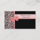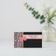 Un carte de visite rose et noir couleur pêche moderne et à la mode de wedding planner d'empreinte de léopard avec un ruban mignon et girly attaché dans un arc élégant. Une conception animale à la mode de motif pour annoncer vos services en tant que coordonnateur l'épousant certifié. Image imprimée d'appartement, arc non réel.