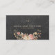 Elégant carte de visite rustique monogrammé avec un délicat bouquet rose de crème de pêche fleurissant, votre nom, titre, et monogramme dans un simple script de typographie faux or contre un arrière - plan de tableau noir de charbon gris foncé. ++++++++++ Facile à personnaliser avec le nom de votre entreprise et les coordonnées au dos ! ++++++++++ Convient aux wedding planners, designers de jardin, professionnels de la beauté, consultants de style personnel, directeurs de boutique, designers d'intérieur et animateurs, maquilleurs, coiffeurs, artistes indépendants et blogueurs.