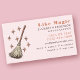 Ce carte de visite d'inspiration sorcière et rétro présente un logo dessiné à la main d'un balai aux couleurs pastel, parfait pour une femme de ménage, un service de ménage, un concierge ou une bonne.