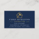 Carte De Visite Wood Building Metallic Navy Blue Gold QR Code