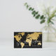 Carte du monde noir et de l'or sur un carte de visite élégant, minimaliste et moderne pour un planificateur de voyage, un blogueur d'aventure, un directeur de maison de vacances ou un planificateur de mariage de destination. Les polices et la couleur des arrière - plans de cartes peuvent être changées pour correspondre aux couleurs de votre marque de petite entreprise. L'huile est un effet imprimé, pas un papier authentique.