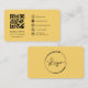 Present your brand with this yellow professional logo QR code business card. The bright yet polished color palette adds a confident, approachable look, while the integrated QR code allows quick access to websites, contact details, or social media profiles. Designed with clarity and balance, this card is ideal for business owners, creatives, and professionals who want a modern, print-ready design with seamless digital connection.