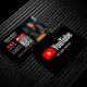 YouTuber and podcaster business card template designed for female content creators, podcast hosts, and digital entrepreneurs. The front features a classic YouTube logo with space for your channel or podcast name for instant brand recognition.