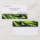 Carte zébrée noire et verte avec beaucoup d'espace en blanc pour des informations de contact importantes.
