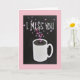 Design original par Dian...........Une carte de voeux qui touche et les express aiment ceux qui sont loin de chez nous. L'avant de la carte est fantaisiste et charmant avec une tasse de café blanc et des petits coeurs qui sortent du haut et des lettres de l'autre côté du haut disant, vous me manquez. L'intérieur est laissé vide, vous pouvez donc écrire un message de votre choix.