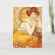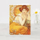 Carte de voeux Alphonse Mucha Topaz. Peinture à l'huile sur toile. L'artiste tchèque Alphonse Mucha peint fréquemment des allégories, et Topaz est une série représentant des pierres précieuses comme de belles femmes. Le tableau présente une jeune belle jeune femme vêtue d'une robe topaze profonde, et placée à l'intérieur d'un arrière - plan orné de bijoux. Un grand cadeau pour les fans de Mucha, Art Nouveau, et tirages vintages.