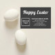Carte de voeux noire à plat pour Pâques que vous pouvez customiser en téléchargeant votre logo d'entreprise, en tapant votre nom d'entreprise, adresse, numéro de téléphone et site Web. Customisez-le et donnez-le à vos clients ou clients pour les saluer cette Pâques. Carte de voeux plate comme matériel de marketing aussi pour annoncer votre entreprise ou pour promouvoir votre marque. Carte de voeux personnalisable que vous pouvez utiliser pour sensibiliser la marque. Veuillez vérifier l'apparence des côtés avant et arrière après avoir téléchargé le logo et tapé des textes. Si l'apparence vous plaît, vous pouvez passer votre commande maintenant. Si vous avez besoin de redimensionner et repositionner le logo et les textes pour les mettre sur cette carte ou sur la taille que vous avez choisie, s'il vous plaît ajuster dans l'outil de conception. Vous pouvez également modifier la couleur arrière - plan, la couleur de police et le style de police dans l'outil de conception. Joyeux Pâques ! Je vous souhaite plus de ventes ce jour férié.