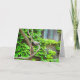 Une carte de voeux vierge avec un mignon écureuil gris assis sur une vigne aux feuilles vertes. C'est une photo nature mignonne.