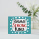 "Brave Strong Kind" est une mignonne citation inspirante ou motivationnelle avec une forme d'accent blanc entourée de points blancs texturés.