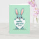 Cette carte présente un personnage de lapin sympathique aux longues oreilles avec de grands yeux expressifs et une fourrure sarcelle douce, debout au centre sur un fond vert menthe pastel 🐰. Le lapin soulève un panneau en forme de cœur au-dessus de sa tête comme s'il l'offrait à quelqu'un de spécial, avec un sourire tendre et impatient et des joues roses qui suggèrent un doux béguin ou une amitié proche. Le texte de vœux se trouve sur le panneau en forme de cœur en lettrage sarcelle foncé, avec quelques petits symboles d'affection placés à proximité. Une teinte rose doux borde les longues oreilles intérieures, encadrant le visage et ajoutant un regard doux et affectueux. La mise en page reste simple avec beaucoup d'espace ouvert, gardant l'accent sur le personnage et le message. Les couleurs sont légères et printanières 🌷, avec des contours lisses et