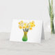 "Meilleurs Voeux" - carte de voeux printanière entièrement personnalisable avec beau bouquet de jonquilles dans un vase jaune-vert sur arrière - plan blanc.