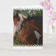 Peinture et cheval de baie caressant vers le haut de la carte de voeux.