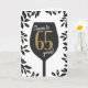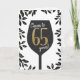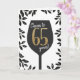 Elégant salut d'anniversaire noir blanc et or pour quelqu'un de soixante-cinq ans. Salutations à 65 ans ! Félicitez quelqu'un avec cette carte de verre de vin moderne avec des feuilles avant leur 65e anniversaire.