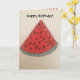 Il s'agit d'une joyeuse carte de voeux d'anniversaire avec une pastèque sur le devant et à l'intérieur il a une frontière de pastèques. Sur le côté gauche de la carte il est vide et sur le côté droit il dit que vous êtes un dans un melon. Sur le dos, il est écrit SK_creations et "Artistical Random".