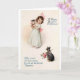 Carte de voeux d'anniversaire rétro / Vintage. Adorable petite fille tenant son chat tout en adonnant son chien qui tient un bouquet de roses ! Un Anniversaire Très Heureux ! Seulement Un Mot Pas Moins De Vous Souhaiter Le Vieux Souhait Bonheur! Magnifique carte d'anniversaire Vintage ! Très doux !