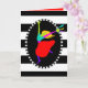 Cette danseuse Davidic joyeuse et porteuse de tambourins est superposée à des rayures audacieuses en noir et blanc. La carte intérieure est bordée et coordonnée pour votre plaisir d'écriture. Bon appétit ! ~ karyn