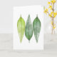 Une carte de voeux simple comportant une peinture d'aquarelle de trois feuilles de laurier, également connue sous le nom de feuille de laurier. À l'intérieur de est vide pour votre propre salutation personnelle.