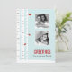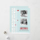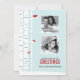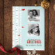Une adorable carte de Noël personnalisée avec une belle illustration vectorielle d'une scène hivernale fantaisiste de rouges-gorges perchés sur des bouleaux sur un beau fond bleu clair. Personnalisez avec vos photos de famille et un message de votre choix.