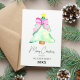 Découvrez le charme envoûtant de la saison des fêtes avec cette carte de vœux de Noël représentant un arbre de Noël avec un nœud rose en aquarelle. Cette carte allie parfaitement le charme festif à l'élégance artistique, avec une illustration aquarelle méticuleusement détaillée d'un arbre de Noël orné d'un nœud bleu élégant. L'impression de haute qualité accentue les détails complexes de l'aquarelle, créant une expression intemporelle et sophistiquée de l'esprit de la saison. Ce qui distingue cette carte est son potentiel de personnalisation - ajoutez votre touche personnelle en incluant le nom de la famille, l'année et un message de votre choix. Cette caractéristique unique transforme la carte en un objet précieux, la rendant un choix idéal pour ceux qui cherchent une façon réfléchie et personnalisée d'envoyer des vœux chaleureux pour les fêtes.