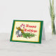 Envoyez vos vœux de la saison à vos amis et à votre famille avec ces cartes de Noël qui représentent des cloches, du houx et un bâton de bonbon et disent joyeuses fêtes, et le message à l'intérieur est, Joyeuses fêtes, nous vous souhaitons une saison de fêtes joyeuse et une année nouvelle heureuse et saine.