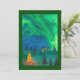 Carte de voeux avec peinture de vacances médiatique mixte. Aurora borealis et bonfire.