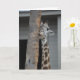Une girafe de masai (camelopardalis de Giraffa) cache une partie de son visage contre un palmier. Est-elle étant timide ou effarouchée ? Photographie Cathey 2008 Osborne de SmilodonArt.com.