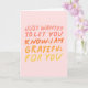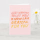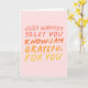 Carte de vœux de gratitude à lettrage chaleureux Juste parce que - Cela fonctionne également comme une carte de la Saint-Valentin !