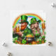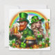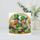 Carte de vœux de la Saint-Patrick avec un homme et une femme irlandais buvant de la bière, des pots d'or, des trèfles et un arc-en-ciel