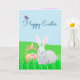 Carte de vœux de lapin de Pâques et panier d'œufs