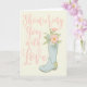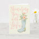 Cette carte de vœux est parfaite pour envoyer vos meilleurs vœux à la future mariée à l'occasion de sa fête de mariage. Cette carte présente le message "Showering You with Love" ("Nous vous couvrons d'amour") sur le devant, écrit en jolies lettres roses sur fond ivoire, avec une illustration d'une botte de pluie en caoutchouc bleu clair tenant un bouquet de fleurs. L'intérieur de cette carte de vœux peut être laissé tel quel ou personnalisé avec votre propre message.