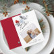Diffusez la joie durant cette période des fêtes avec cette simple et élégante carte de vœux photo. comporte un lettrage élégant et minimaliste «Joyeux Noël» dessiné à la main et une photo carrée moderne avec un ornement de Noël rouge floral à l'aquarelle. Facile à personnaliser avec votre photo de famille et le nom. Voir l'article correspondant dans ma boutique "DreamHut".