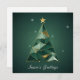 Une carte de Noël élégante et élégante, avec un arbre géométrique abstrait de forme triangulaire en dégradé de vert émeraude, de sauge et d'or métallique. Des lignes cramponnées et des flocons de neige minimalistes sur un arrière - plan blanc apportent une touche contemporaine. L'élégante sans-serif texte 'Bonnes Fêtes complète cette carte de vacances design-forward.