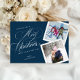 Envoyez vos vœux chaleureux pour cette période des fêtes avec une carte de vœux personnalisée ! Ce design moderne et élégant présente un fond bleu marine spectaculaire et une typographie script blanche luxueuse qui dit "Joyeux Noël et Bonne Année". La mise en page permet d'ajouter deux précieux souvenirs photo, créant ainsi un moyen étonnant et très personnel de partager la joie et les mises à jour de votre famille avec vos amis et votre famille.