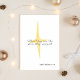 Célébrez le véritable sens de Noël avec cette élégante carte de vœux chrétienne qui présente le verset inspirant de la Bible tiré de Matthieu 2:10 : « Quand ils virent l'étoile, ils se réjouirent ». Une étoile dorée radieuse symbolise l'étoile de Bethléem, apportant chaleur, foi et joie à la saison. Parfait pour envoyer des bénédictions et de l'amour à la famille, aux amis et aux membres de l'église. Idéal pour les vœux de Noël religieux, les événements de l'église ou les célébrations de fêtes basées sur la foi.