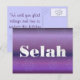 Selah signifie faire une pause en hébreu (traduction libre). Le mot est trouvé dans tout l'ancien testament de la Bible - principalement dans le livre des Psaumes. Cela pourrait être un beau vœu à envoyer pendant cette période des fêtes.
