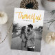 Envoyez une carte de vœux de Thanksgiving élégante avec « Thankful » dans une police script manuscrite, de style aquarelle dorée, et des espaces réservés pour votre photo et votre texte personnalisés.
