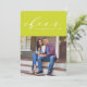 Diffusez la joie des fêtes avec cette carte photo unique, lumineuse et audacieuse, comportant le mot «cheer» dans un script moderne sur un fond jaune lime vert vif. Le message fonctionne très bien pour la joie des fêtes ou la bonne année !