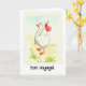 Une carte "de voyage de fève" avec une oie visant sur un voyage avec ses affaires attachées en rouge et un blanc a repéré le mouchoir, de la peinture pour aquarelle par Judy Adamson. L'intérieur de salutation est, "ont un voyage merveilleux !".