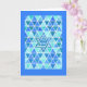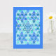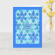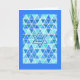 Une carte de voeux de Yom Kippour avec une étoile de David, ensemble dans un motif géométrique dans bleu, vert et blanc, d'une conception peinte à la main de Judy Adamson.
