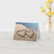 Belle photo professionnelle originale de deux cœurs écrits dans le sable le long de l'eau bleue de l'océan pour signifier l'amour et la romance. Excellent concept pour un mariage estival à venir, un anniversaire, la Saint-Valentin, ou juste pour dire "Je t'aime". Personnalisez l'intérieur ou supprimez le texte d'exemple pour écrire vos propres mots personnels et personnalisés plus tard. Agréable pour petite amie ou petit ami, chéri, femme ou mari !