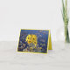 La photo sur cette carte est un tournesol jaune vif et joyeux, avec de l'eau et des feuilles dans le arrière - plan.