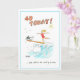 Carte de voeux pour le quarantième anniversaire - bande dessinée drôle de femme surfant sur la crête d'une vague avec le chien mignon d'épagneul.
