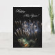 Photographie de véritables feux d'artifice au-dessus d'une carte de voeux.