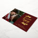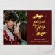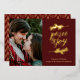 A beautiful photo holiday card featuring evergreen branches and the words Peace & Joy is a stylish hand lettered typeface. Back of the card feobjets a faux gold scalloped background on burgundy. Personalize with your photo, and names Remove the back background and replace the color easily in the design tool.