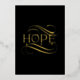 Elégant, chic et profond message de "Hope" dans la police de calligraphie tourbillonnant personnalisée en véritable feuille d'or sur arrière - plan noir. Inclut les champs de texte modifiables.