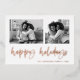 Ce carte photo de vacances familial blanc classique est doté d'une typographie décontractée et moderne en feuille d'or rose, qui dit "happy holiday", avec une grille photo à l'avant pour un design de vacances élégant, moderne et minimaliste. Le dos de la carte est noir.