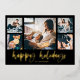 Cette carte de voeux de Noël simple et classique de famille en feuille d'or présente une typographie décontractée et moderne qui dit "Happy Holidays" sur un arrière - plan noir foncé, avec une grille de cinq photos sur le devant et une sur le dos.